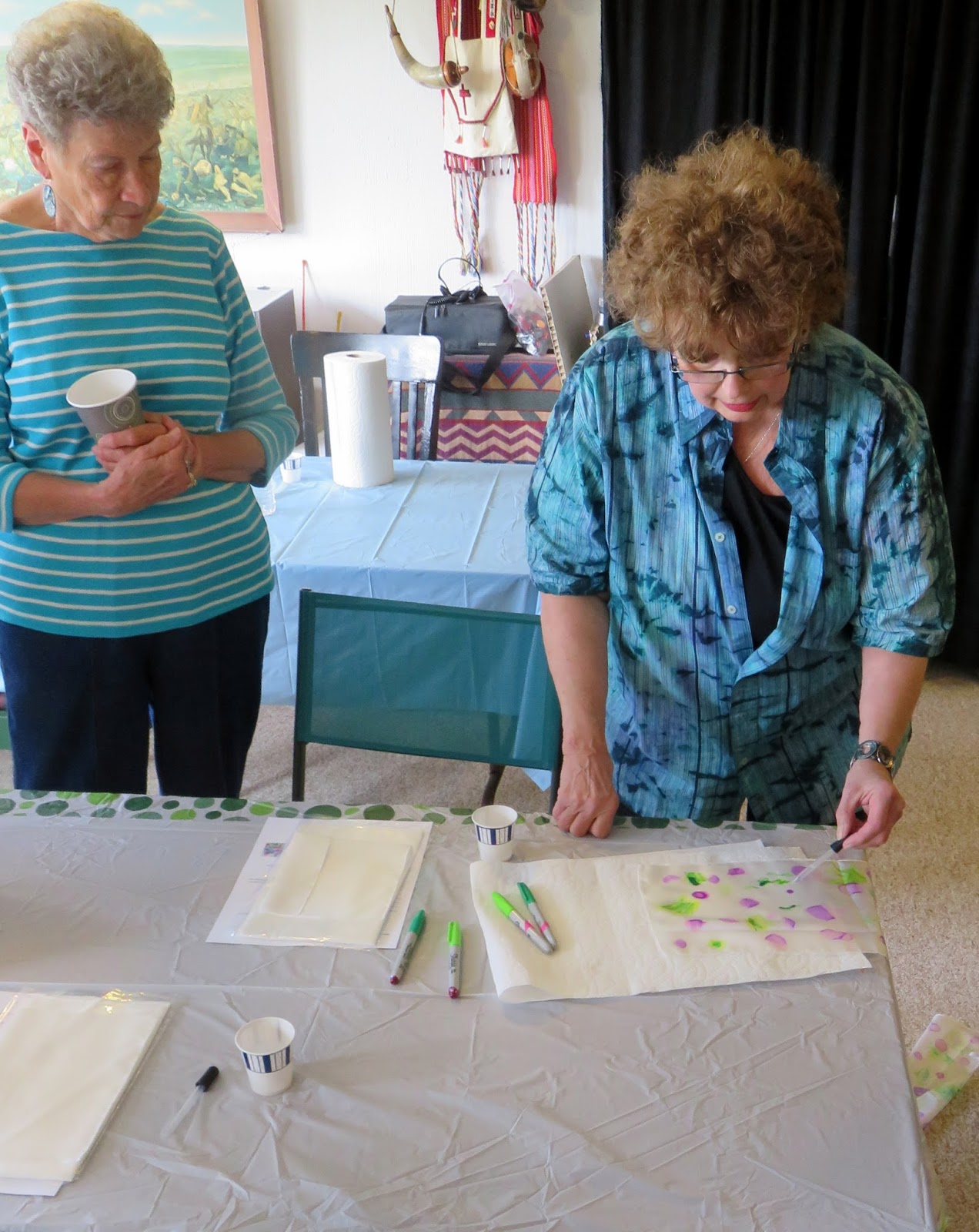 After we got people started on their scarf projects, we slipped upstairs to finish dressing the table and putting out the sandwiches and sweets. We also had (though not pictured) delicious fruit skewers.